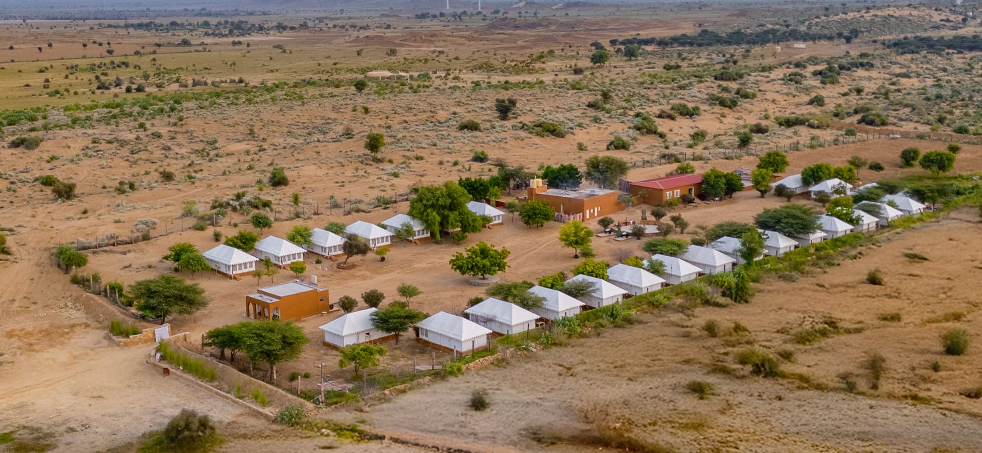 “Padharo Mhare Desh” Enjoy luxury at our vast Jaisalmer Desert camp a peaceful haven across 3 acres of an isolated desert landscape. Our luxurious camp is tucked away in the magnificent Thar Desert, taking inspiration from the traditional Rajputana tent sites. Situated in the charming village of Sam, about 35 km away from Jaisalmer, it offers a peaceful haven amidst the splendor of nature.